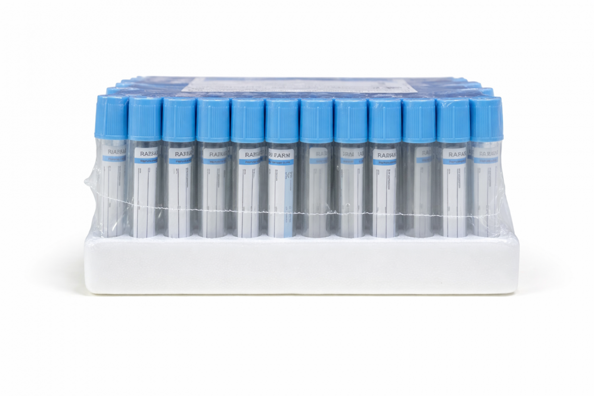 Вакуумні пробірки з натрієм цитратом 3,2% призначені для забору венозної крові для досліджень системи гемостазу. Натрію цитрат діє як антикоагулянт, зв’язуючи іони кальцію та запобігаючи згортанню крові, що забезпечує точність результатів коагулологічних тестів.