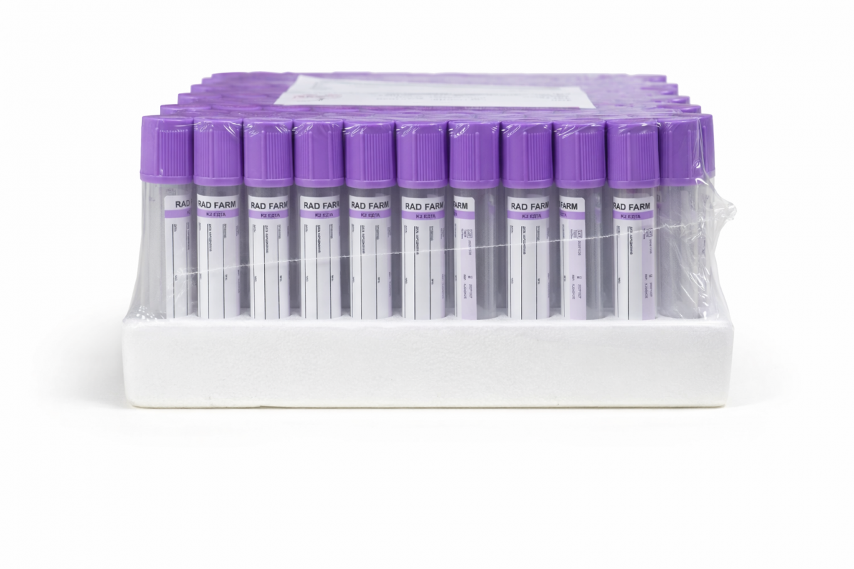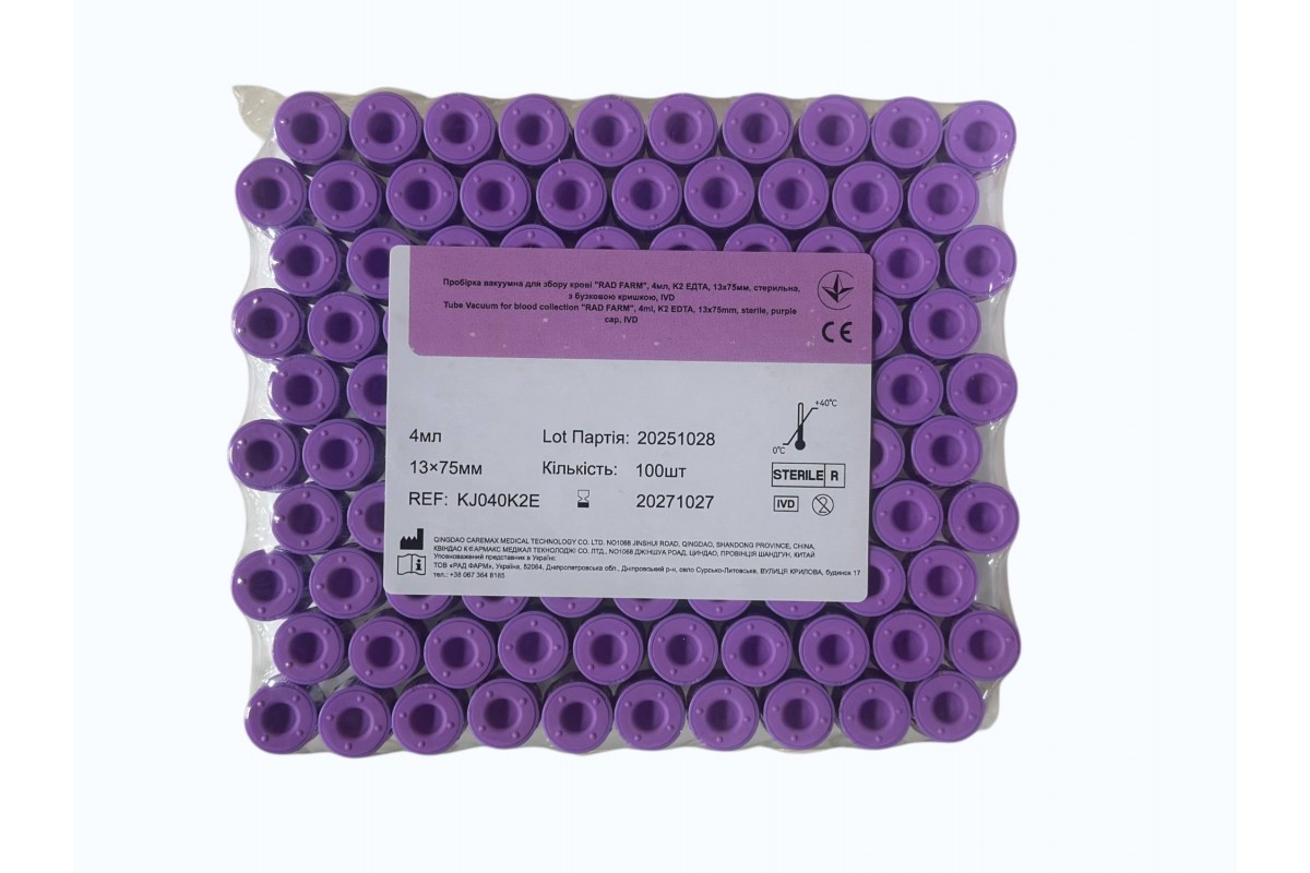 Пробірка вакуумна для збору крові "RAD FARM", 4мл, K2 ЕДТА, 13х75мм, стерильна, з бузковою кришкою, IVD
