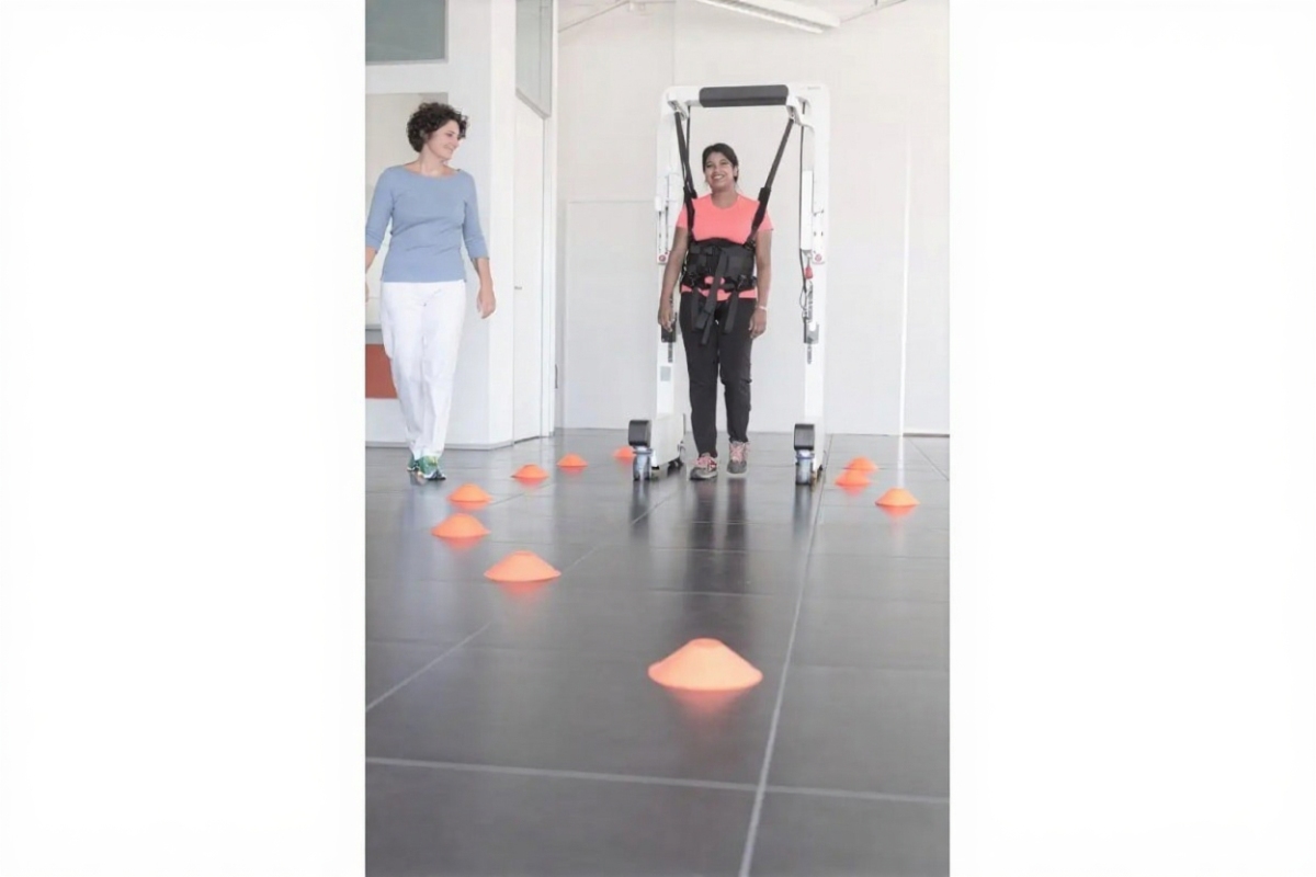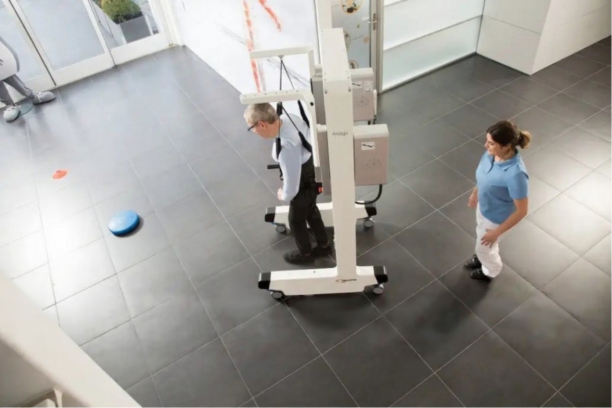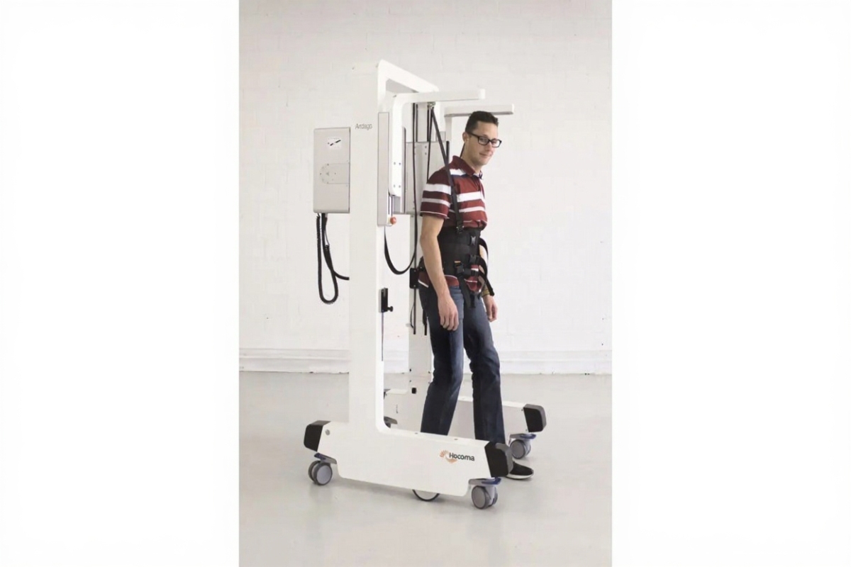 Andago — это мобильная система, предназначенная для поддержки массы тела пациента во время ходьбы. Она позволяет пациенту двигаться в вертикальном положении без опоры на руки.