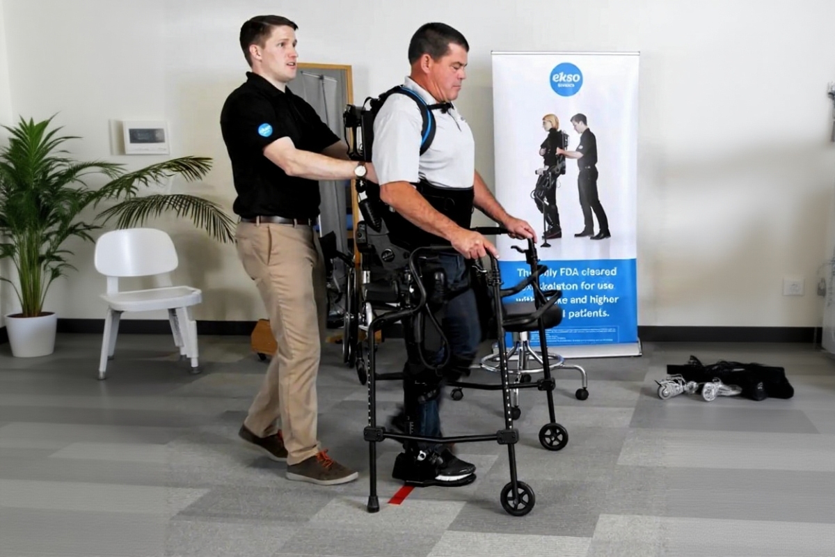 Некоторые экзоскелеты предназначены для использования в качестве вспомогательного устройства для пациентов с травмой спинного мозга и обеспечивают 100% мощности, необходимой для ходьбы. Помимо того, что это единственный экзоскелет, одобренный FDA для ABI, EksoNR также является настоящим реабилитационным инструментом для физиотерапевтов, который бросает вызов своим пациентам, требуя активного участия, которое, как известно, способствует пластичности мозга.