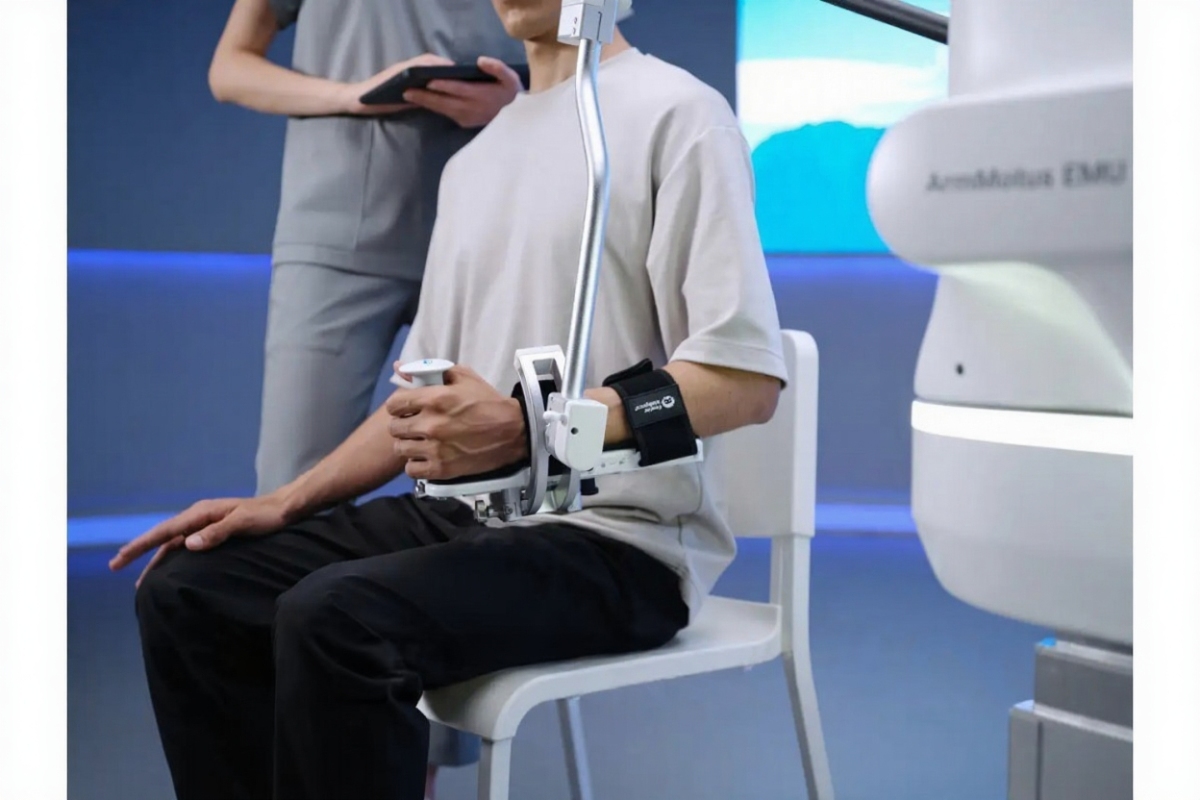 ArmMotus™ EMU - устройство для комплексной реабилитации рук из-за неврологического или скелетно-мышечного нарушения. Технология имитирует поддержку руки пациента, раскрывая остаточные силы и дает укрепить мышцы. На поздних этапах устройство может создавать сопротивление, вместо поддержки.