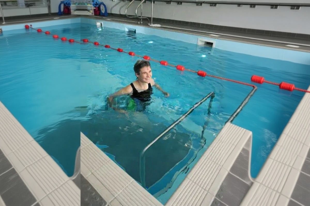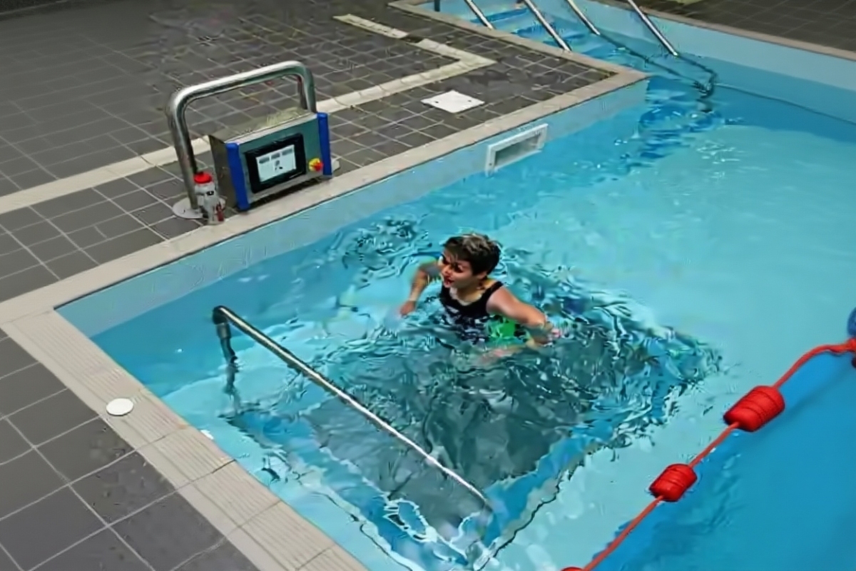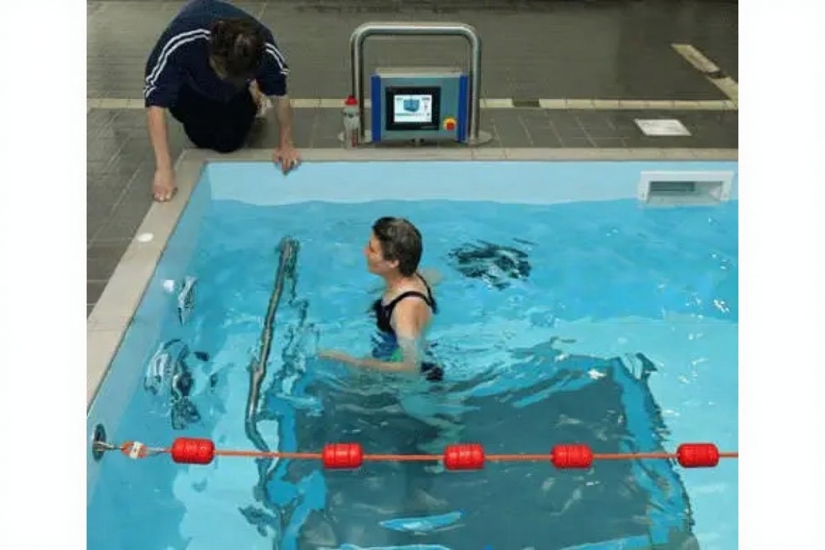 Беговые дорожки могут быть включены в специально разработанные бассейны. Рекомендуемая глубина воды над лентой составляет от 1,0 до 1,3 м, в зависимости от предполагаемого использования (это должно быть указано физиотерапевтом / тренером).