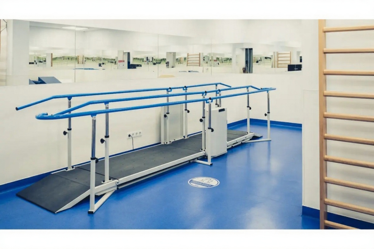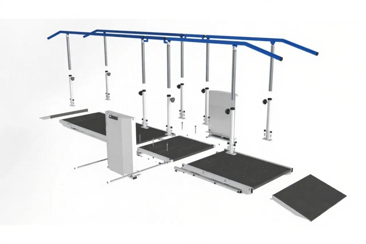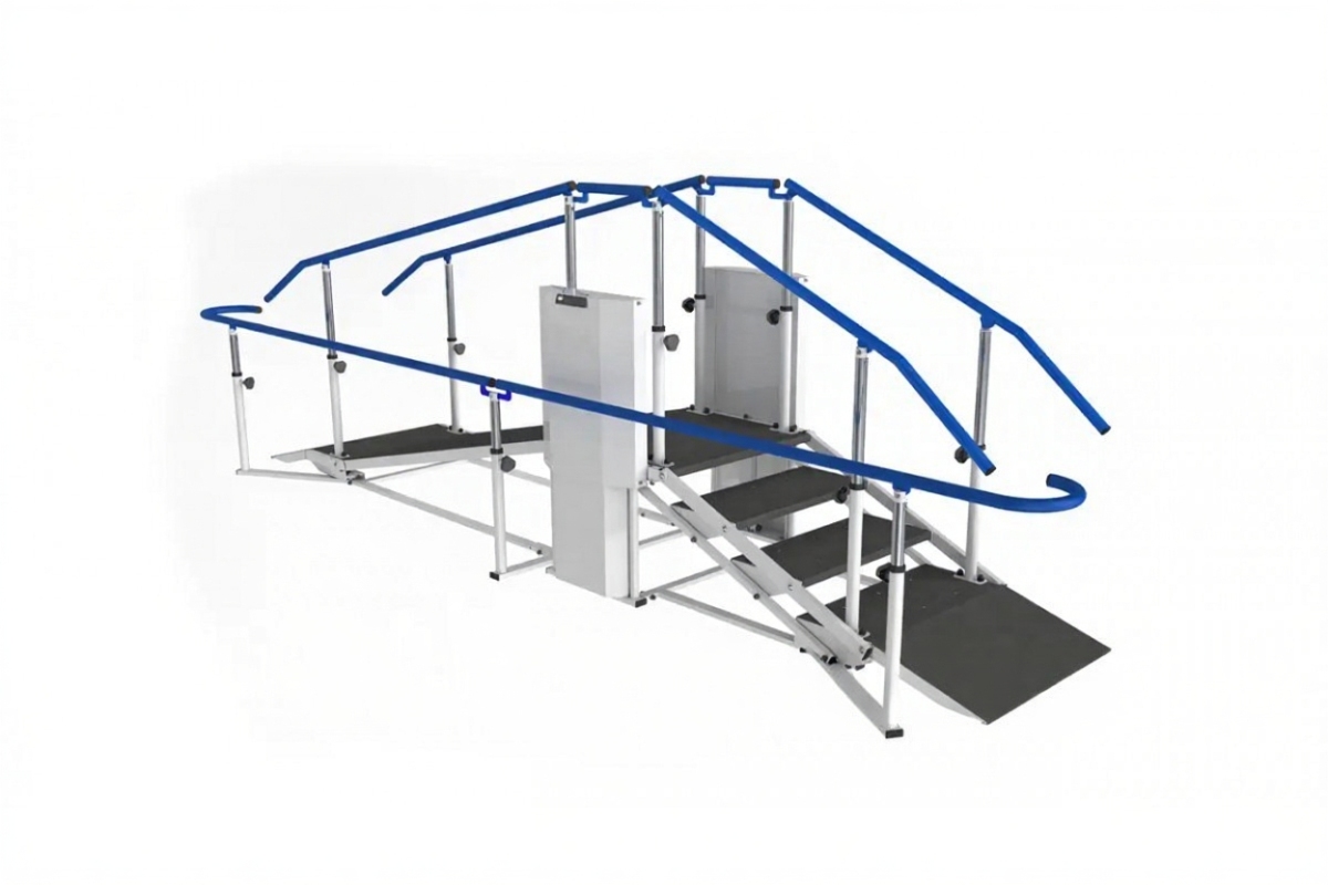 Многофункциональное устройство, сочетающее в себе функции параллельных брусьев и реабилитационных лестниц.