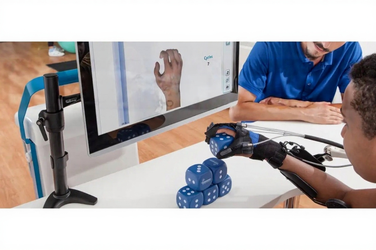 - Настройка избирательных и комбинированных движений: благодаря наличию 5 двигателей (по одному на каждый палец) в лечении пациентов могут использоваться комплексные упражнения, сочетающие различные движения пальцев.