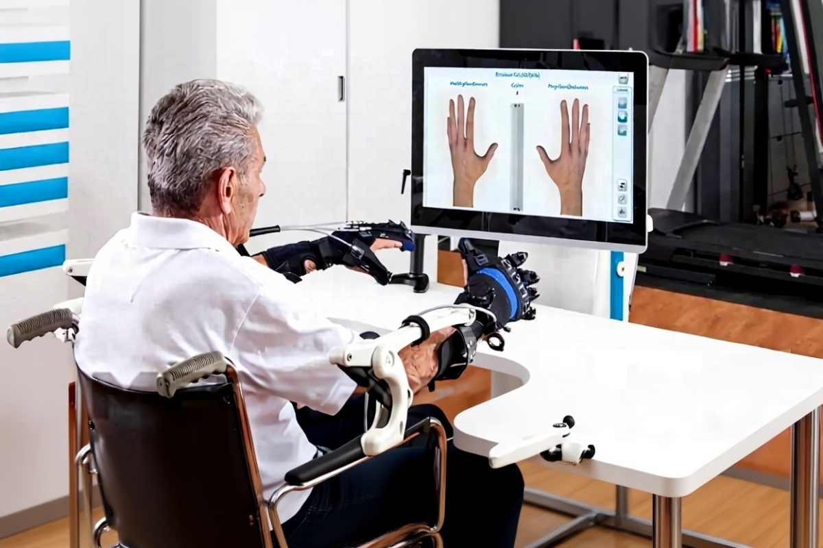 Gloreha - роботизированная перчатка для восстановления активных движений в пальцах. Gloreha позволяет работать одновременно всеми пальцами последовательно или отдельно каждым пальцем. Во время реабилитационных упражнений перчатка Gloreha может использоваться на любой руке и для адаптации ей достаточно всего нескольких минут.