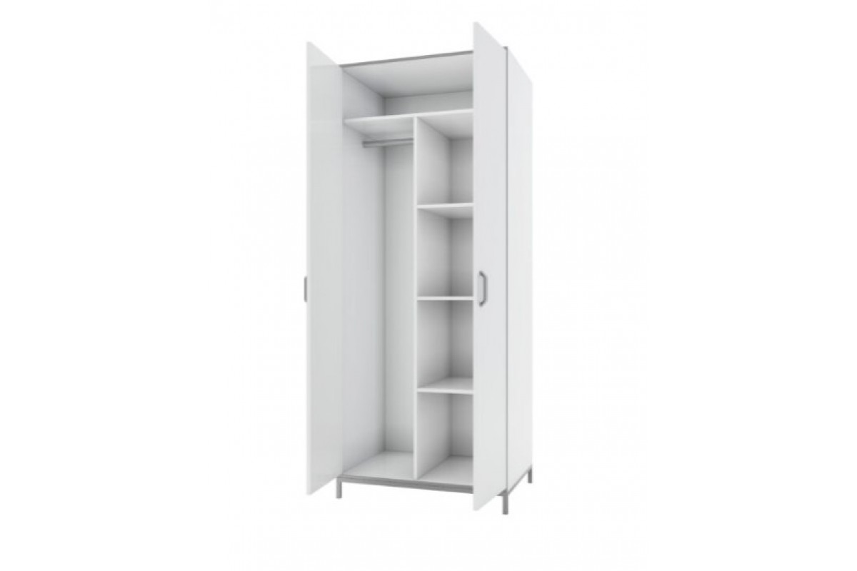 - Внутрішнє наповнення: чотири вертикально розташовані відкриті полиці з правого боку; великий відсік зліва із штангою для вішаків; додаткова верхня полиця для головних уборів чи аксесуарів.