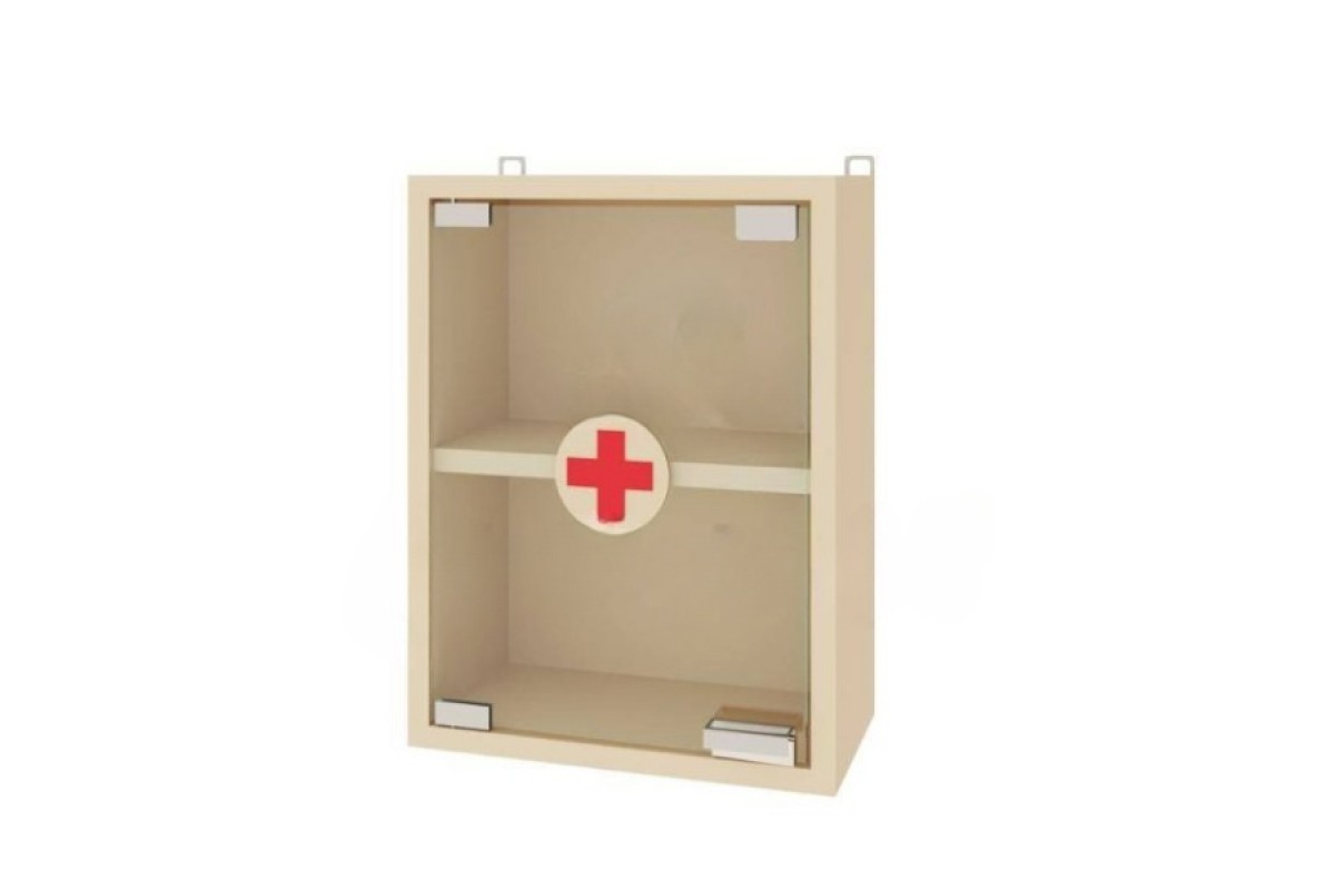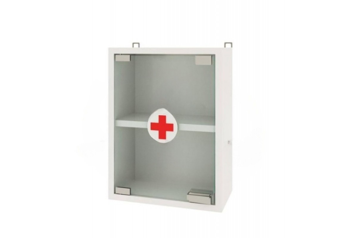 - Зручність у використанні: шафа оснащена однією полицею для організації зберігання та скляними дверцятами з магнітом, які забезпечують легкий доступ до препаратів.