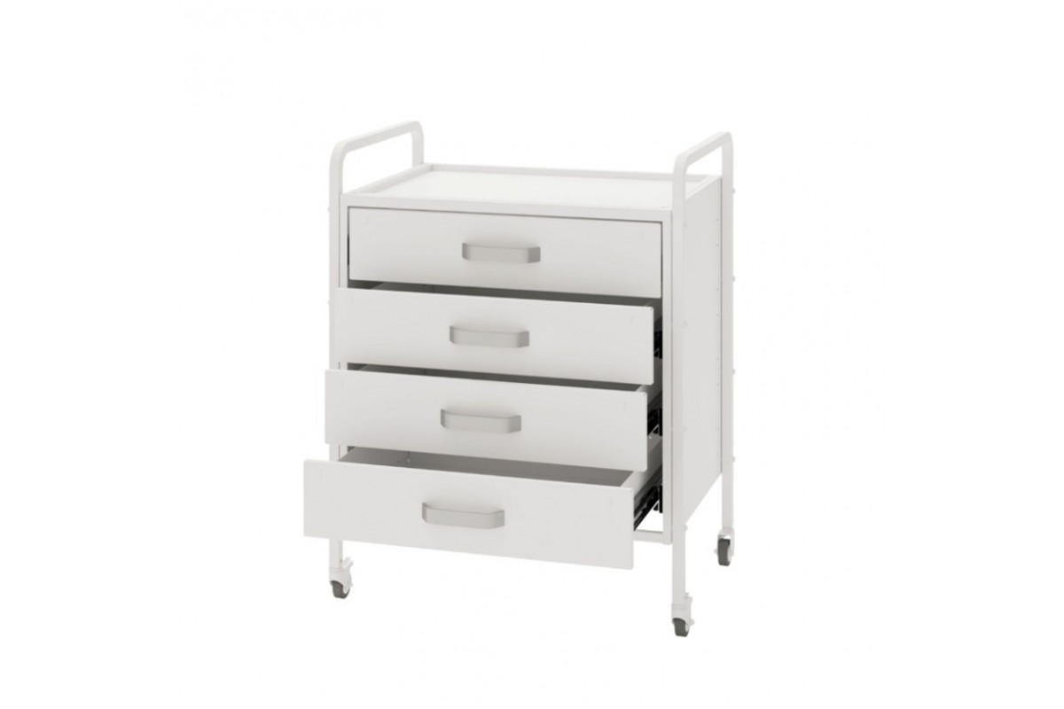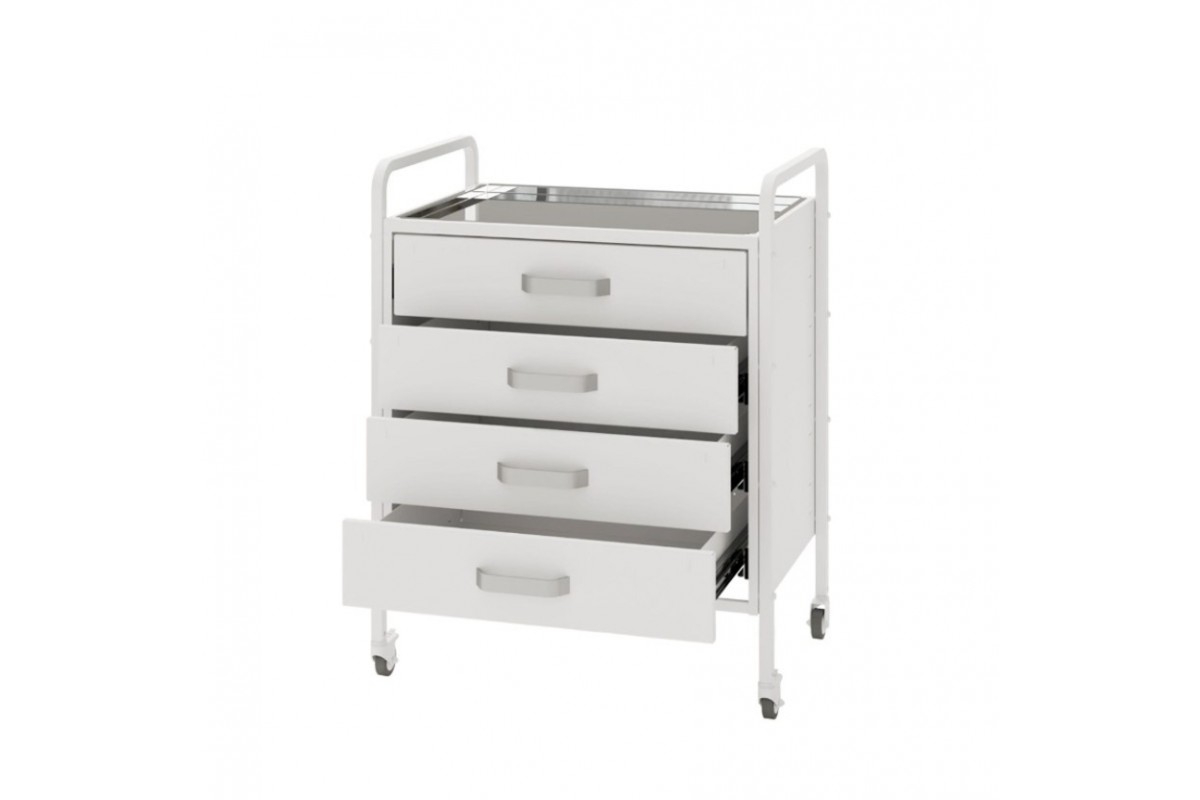 - Мобільність: усі ніжки оснащені коліщатками, завдяки чому столик легко пересувається та адаптується до потреб персоналу.