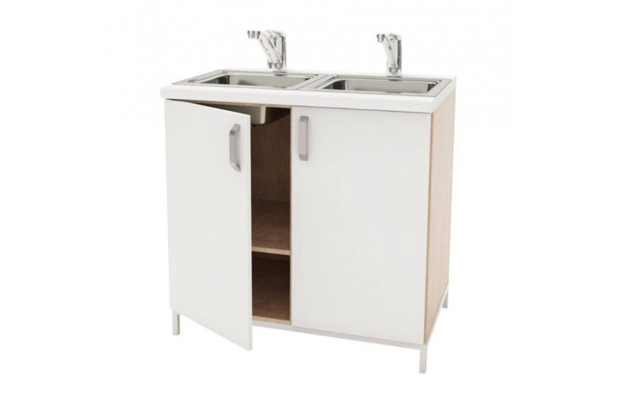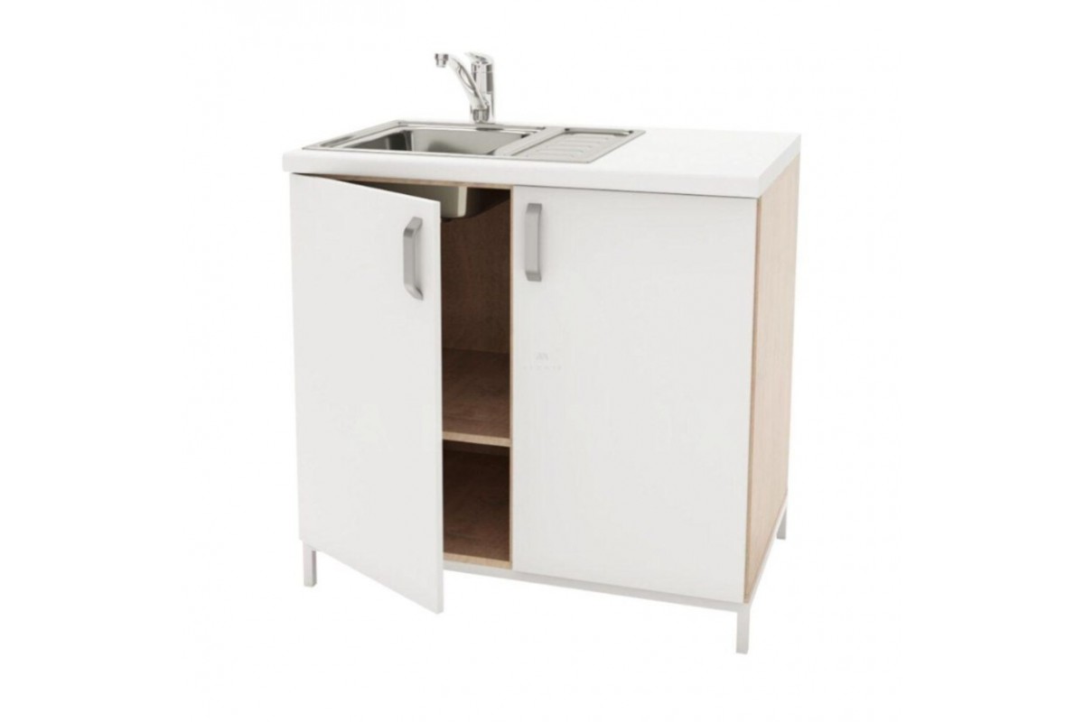 - ТМ-2 з мийкою: корпус із ЛДСП, стільниця та фасади з ДСП з пластиковим покриттям, на опорах 50 мм, розміри: 900×600×900 мм.