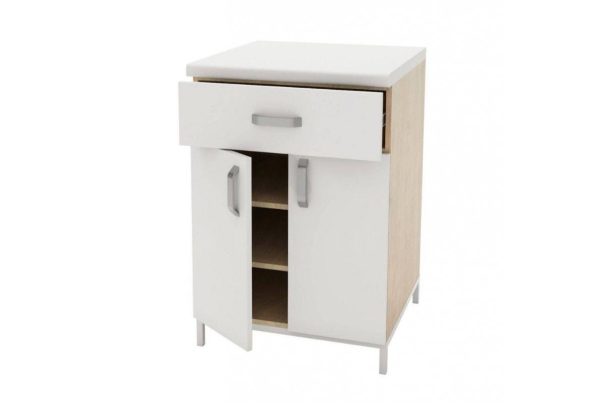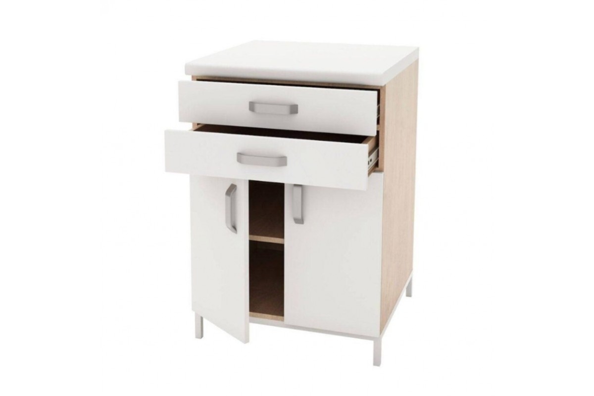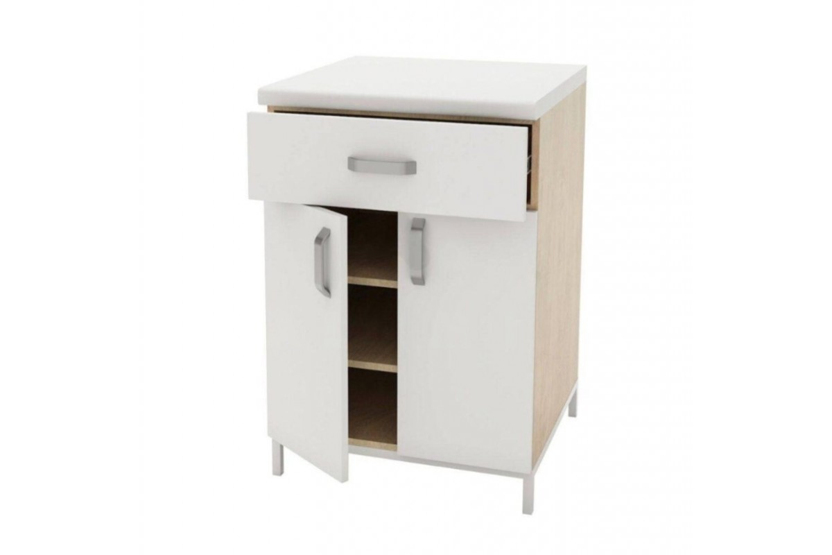 - Стільниця: ДСП з антибактеріальним пластиковим покриттям, яке забезпечує легкий догляд та відповідає високим гігієнічним вимогам у медицині.
