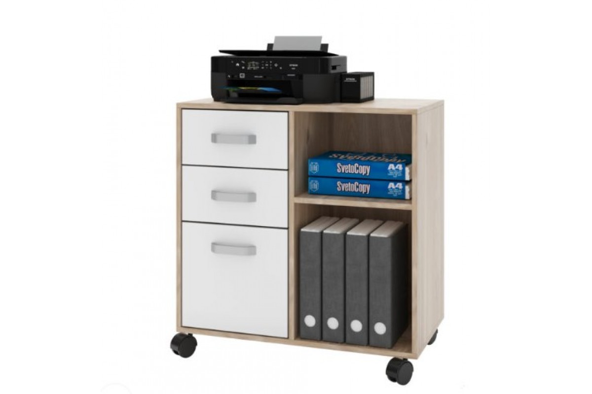 - Оснащення: три шухляди, дві полиці, чотири коліщата для мобільності.