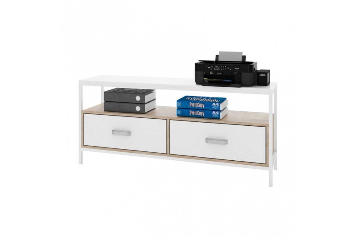 - Різні зони зберігання – дві місткі шухляди для дрібних речей і дві відкриті полички для папок чи документів. Міцна стільниця надає додатковий простір для оргтехніки чи медичних аксесуарів.